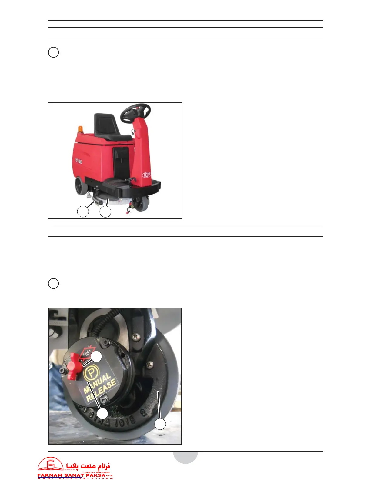 equipped with a key 3 to unlock and manually move the machine when it is stopped. (for example: when the battery