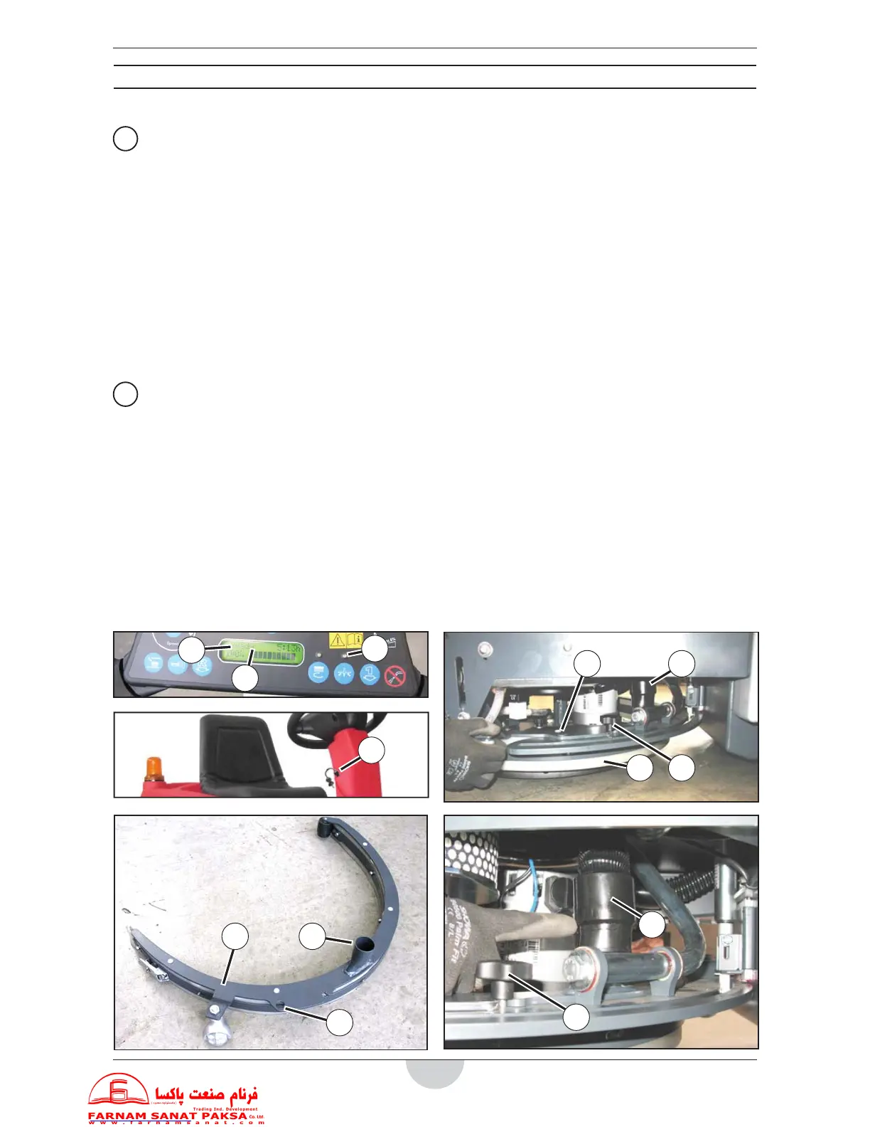 1. Sit on the machine seat and rotate the ignition key (B) to “I”, then wait a few seconds until the caption (D)