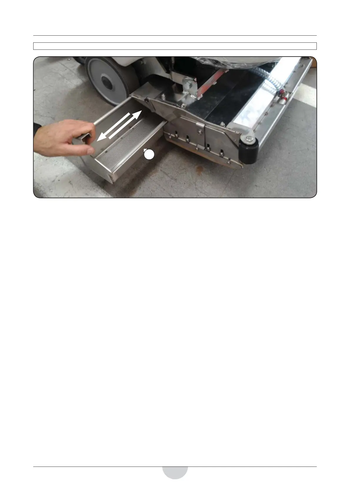 - Estrarre il cassetto detriti posto sul lato destro, come indicato in foto.