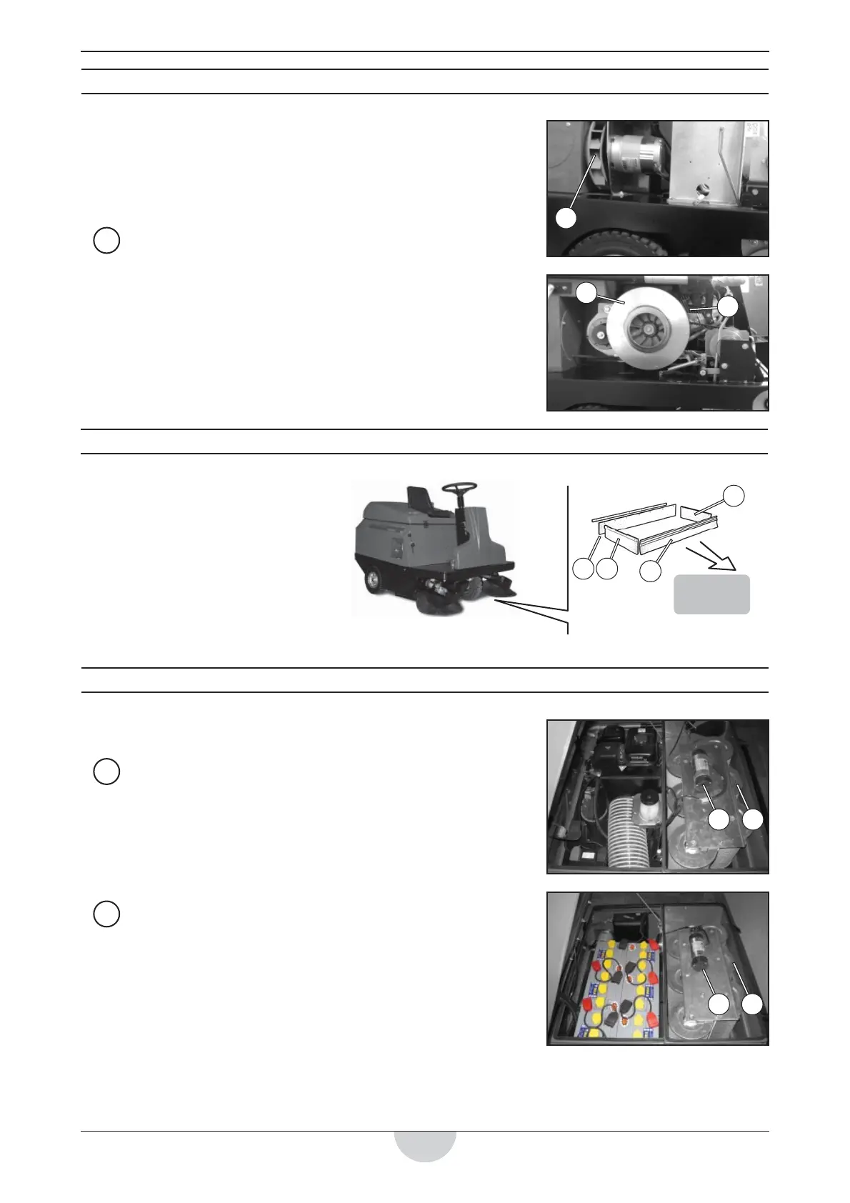 El ventilador de aspiración 1 es el componente que aspira el polvo que levantan los cepillos