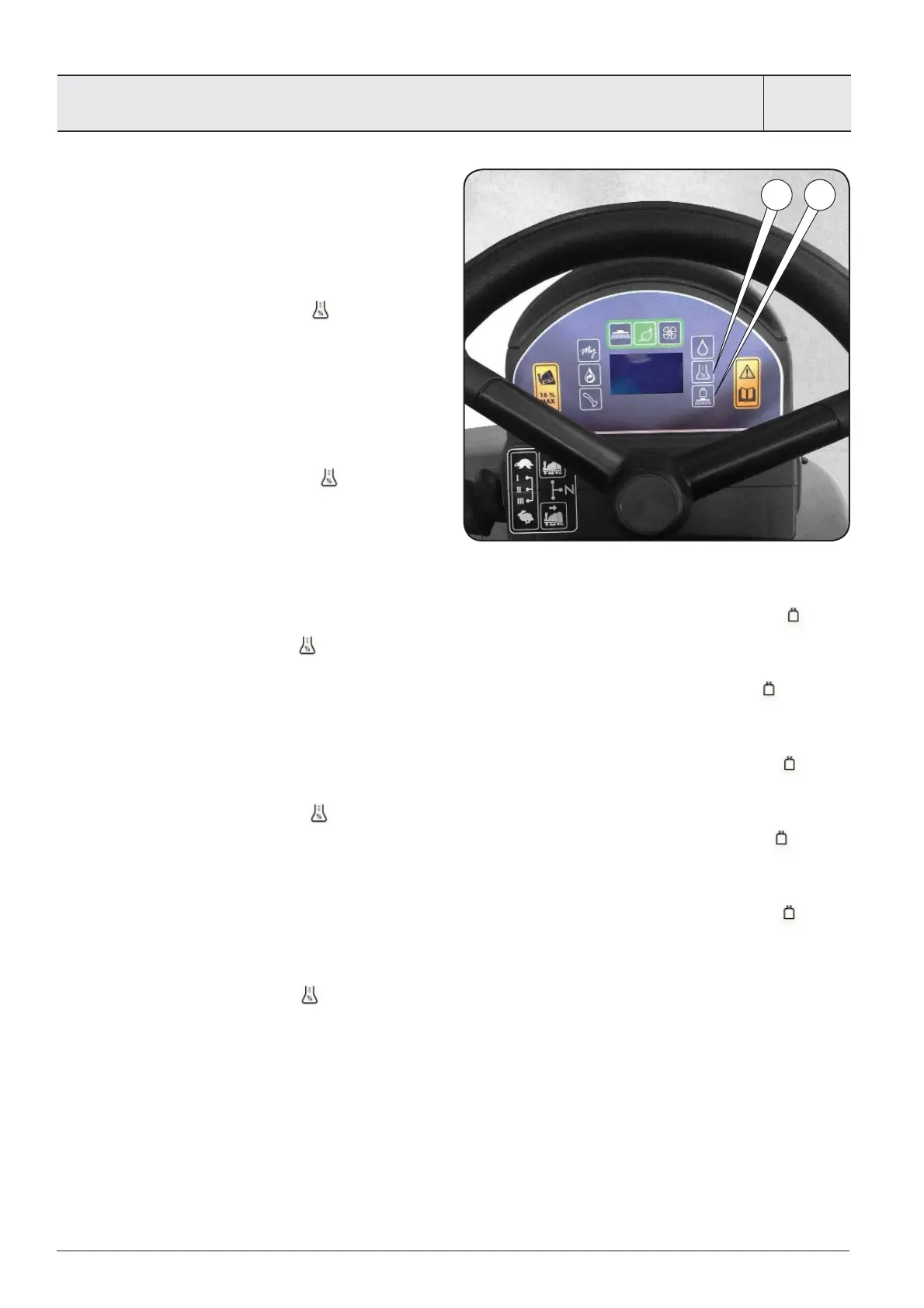 By pressing button 9, you can adjust the pressure of the brushes on the oor. (See