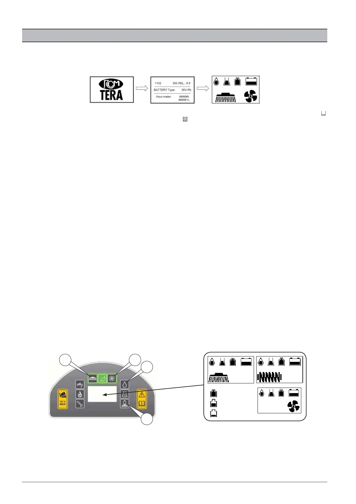 All’accensione del sistema elettrico mediante chiave accensione su pos.1 (vedere “COMPONENTI - POS.10) , compare il logo, successivamente sul display vengono visua-