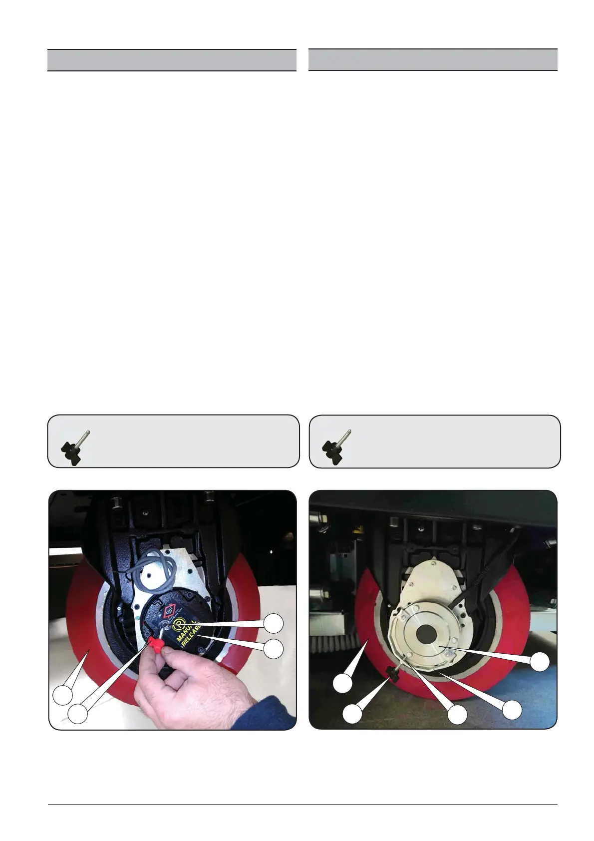 The brakes are used to stop the moving scrubber and to keep it steady on incli-