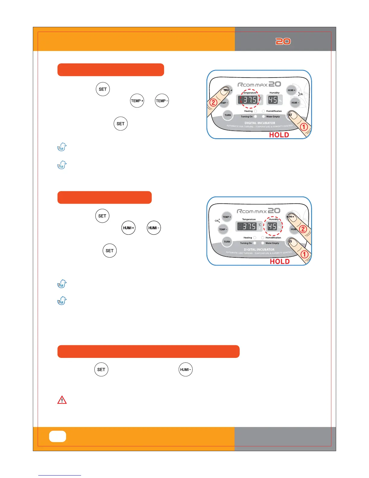 ▶ Be sure to set humidity RH 65 ~ 70% from 1~3 days before hatching.