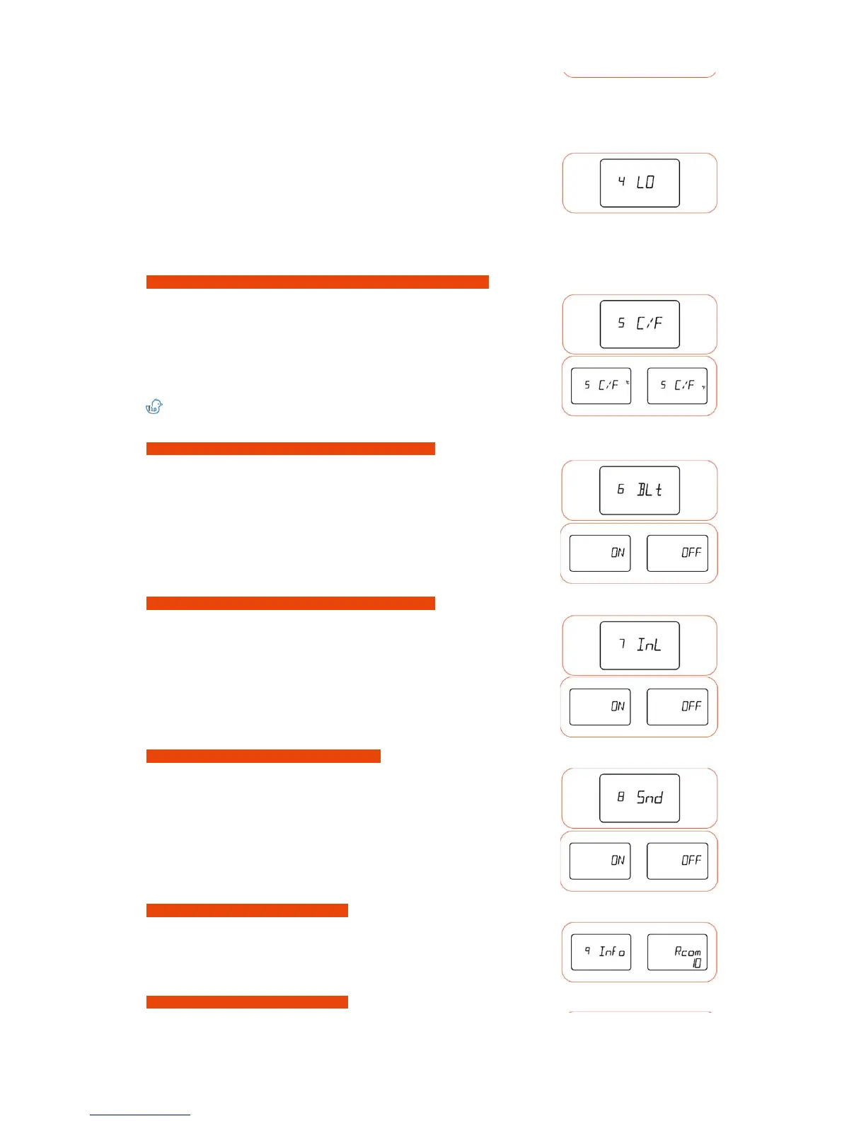 ▶ By pressing + or - button select 5.C/F and press OK to go back to Celsius/Fahrenheit