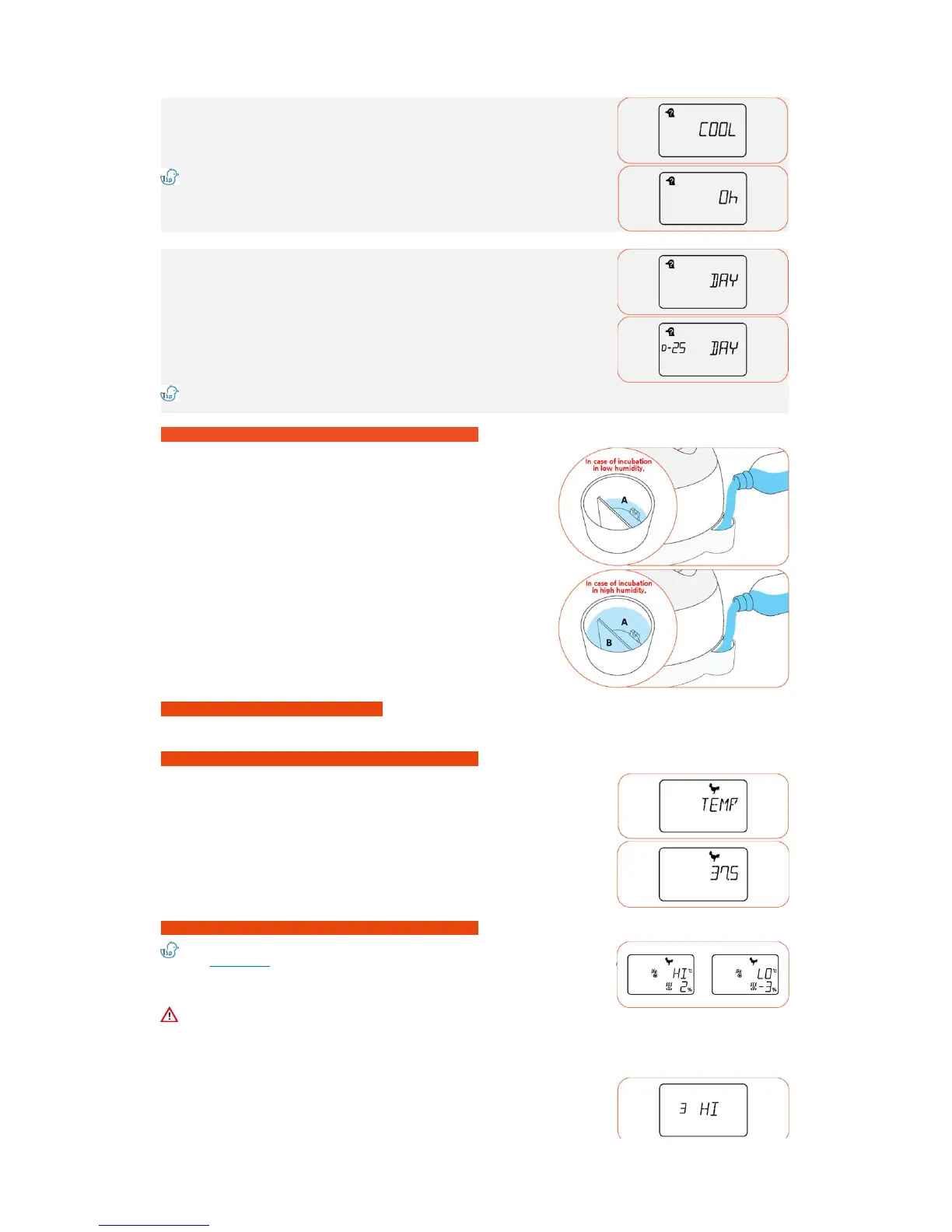 and the setup value is saved and it moves to next step (temperature, humidity, egg
