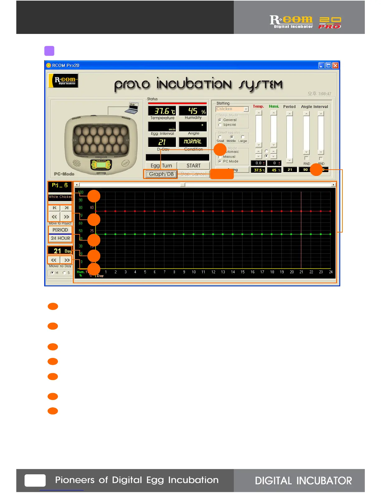 &humidity as above, and also makes a graph of real-time incubator Temp. &humidity at 10min. intervals.