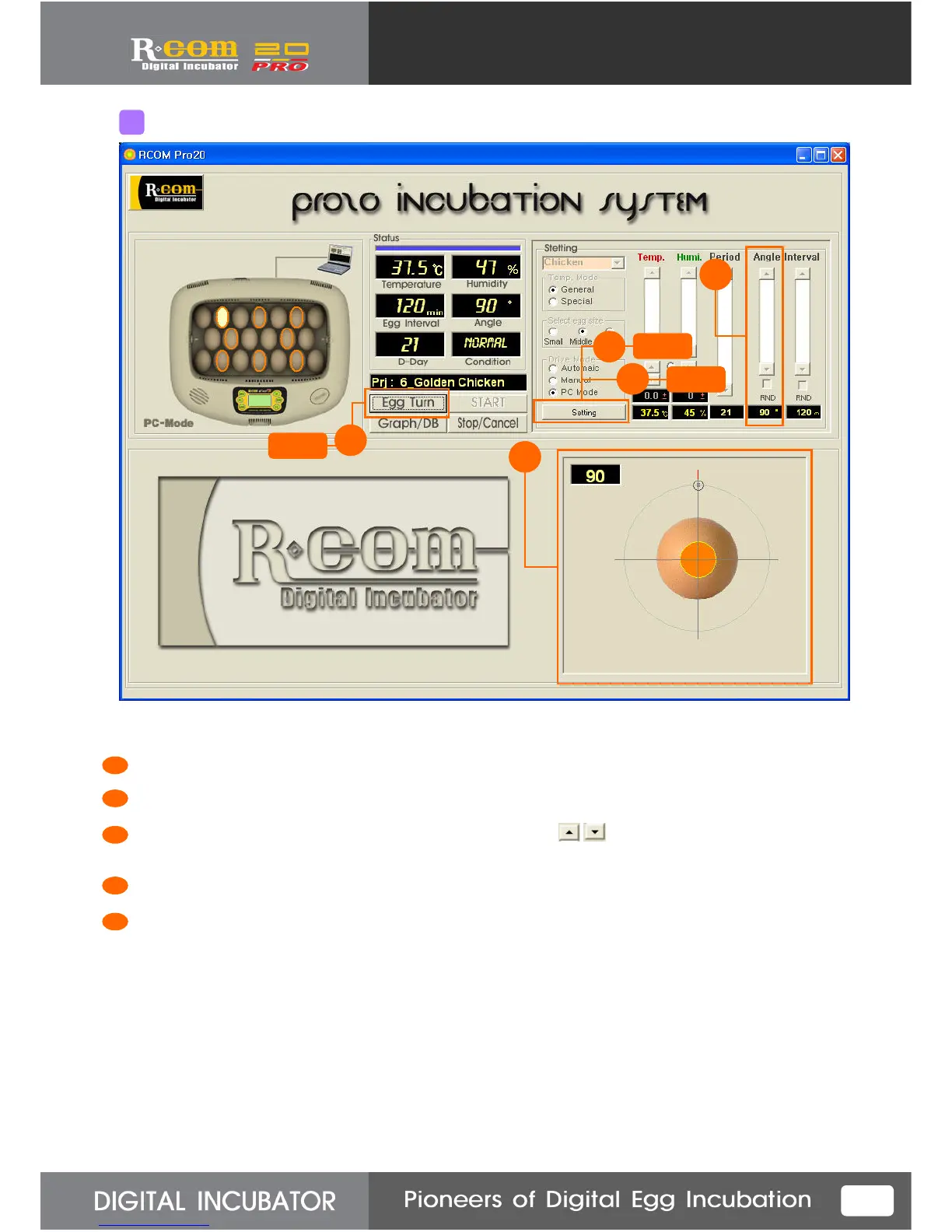 Set the egg-turning angle by pressing setting bar up/down button. (at 15°C intervals 15°C~180 °C)