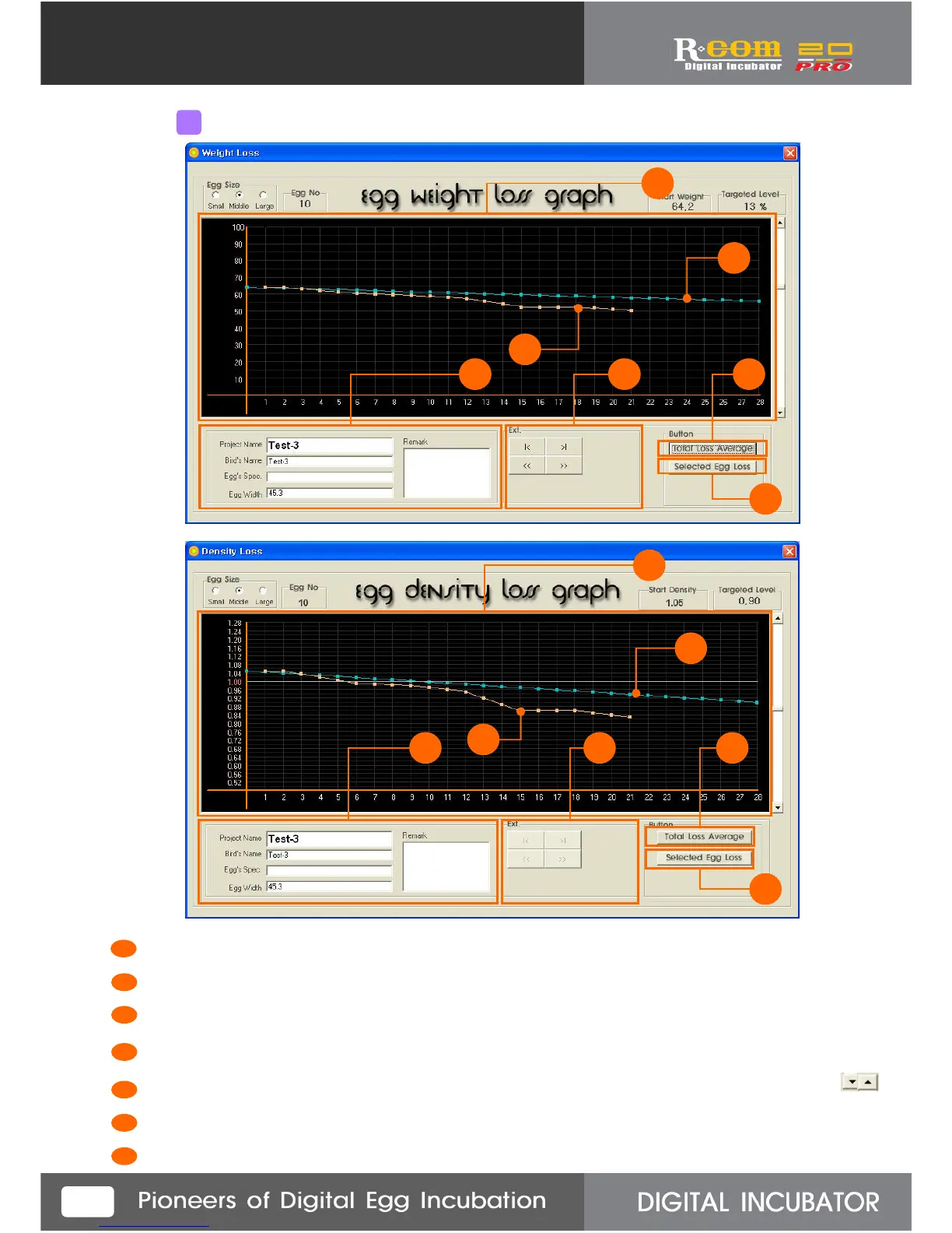 “Total Loss Average” button indicates all egg’s average weight & density loss with graph.
