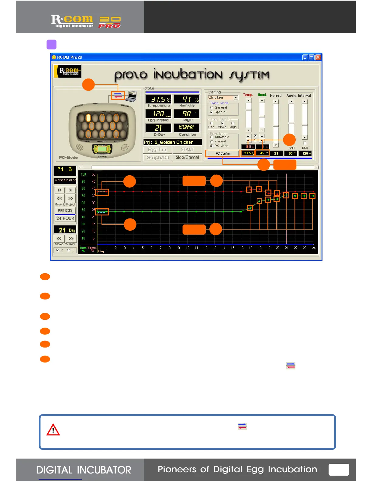Save temp. &humidity setting value. You can control the temp. & humidity on incubation.
