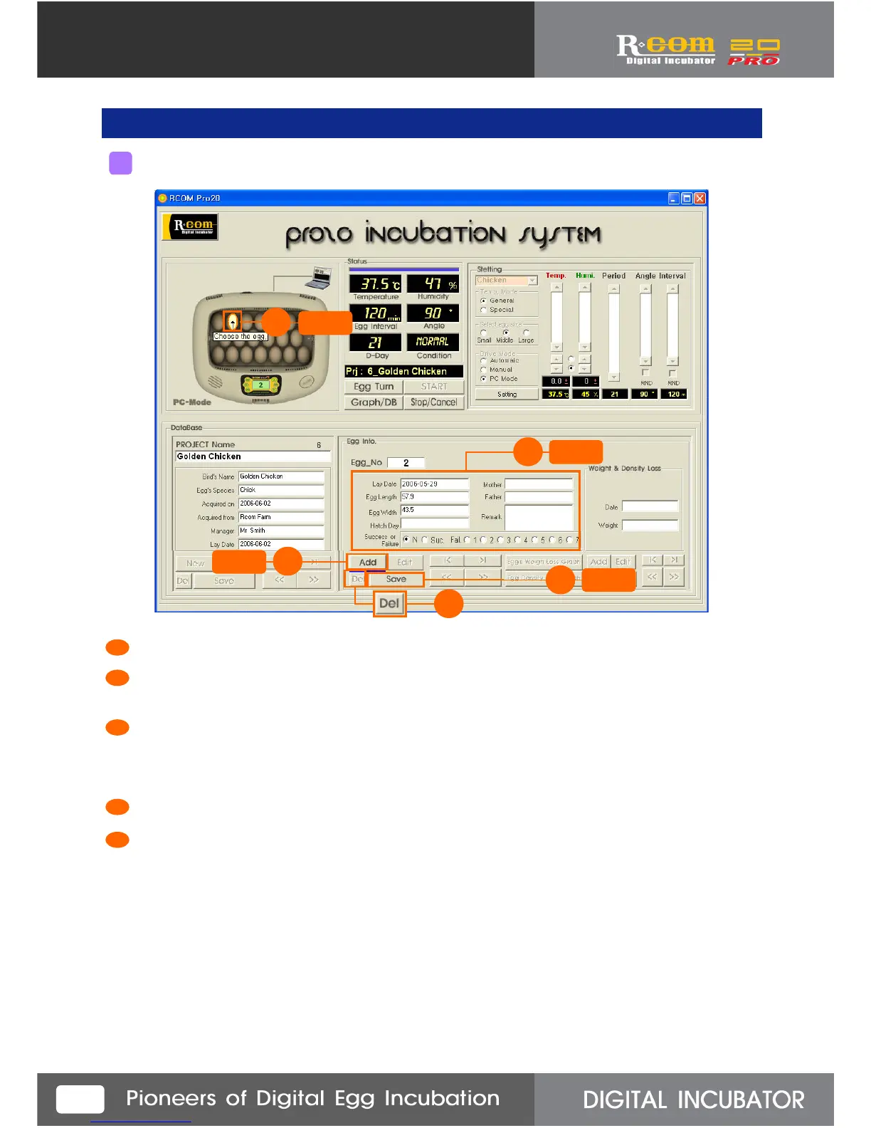 Select the egg which you will input data. Select the egg on incubator picture as above with your mouse.