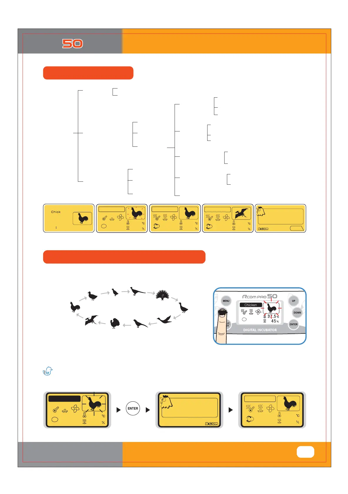 ▶ Select species of birds and press ENTER button for about 2sec. then it starts incubation with automatic mode.