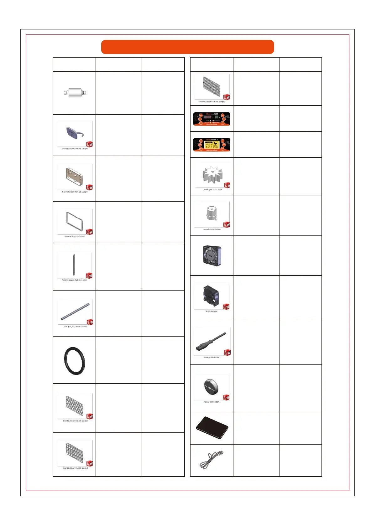 Rcom USB 50, PRO 50, MAX 50 PART LIST