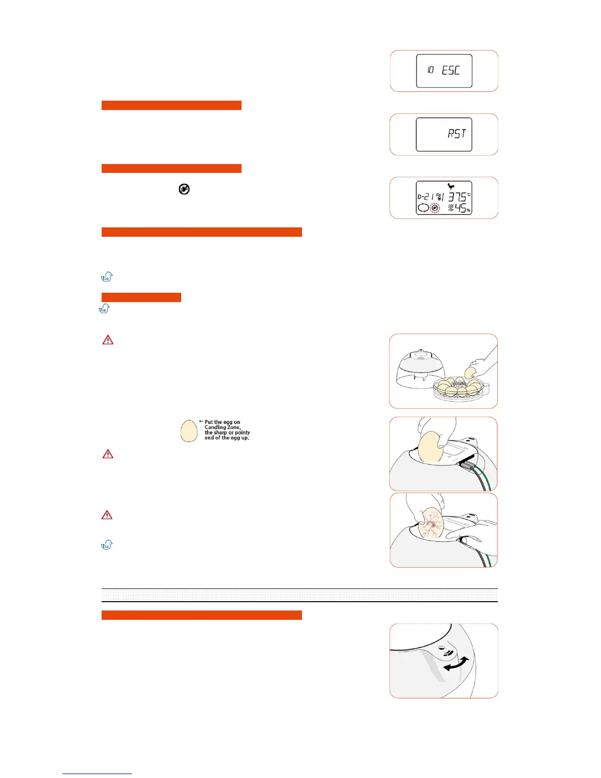 Rcom PRO PLUS 10 - Candling function; Humidity and ventilation control; Management after hatching; Dew condensation