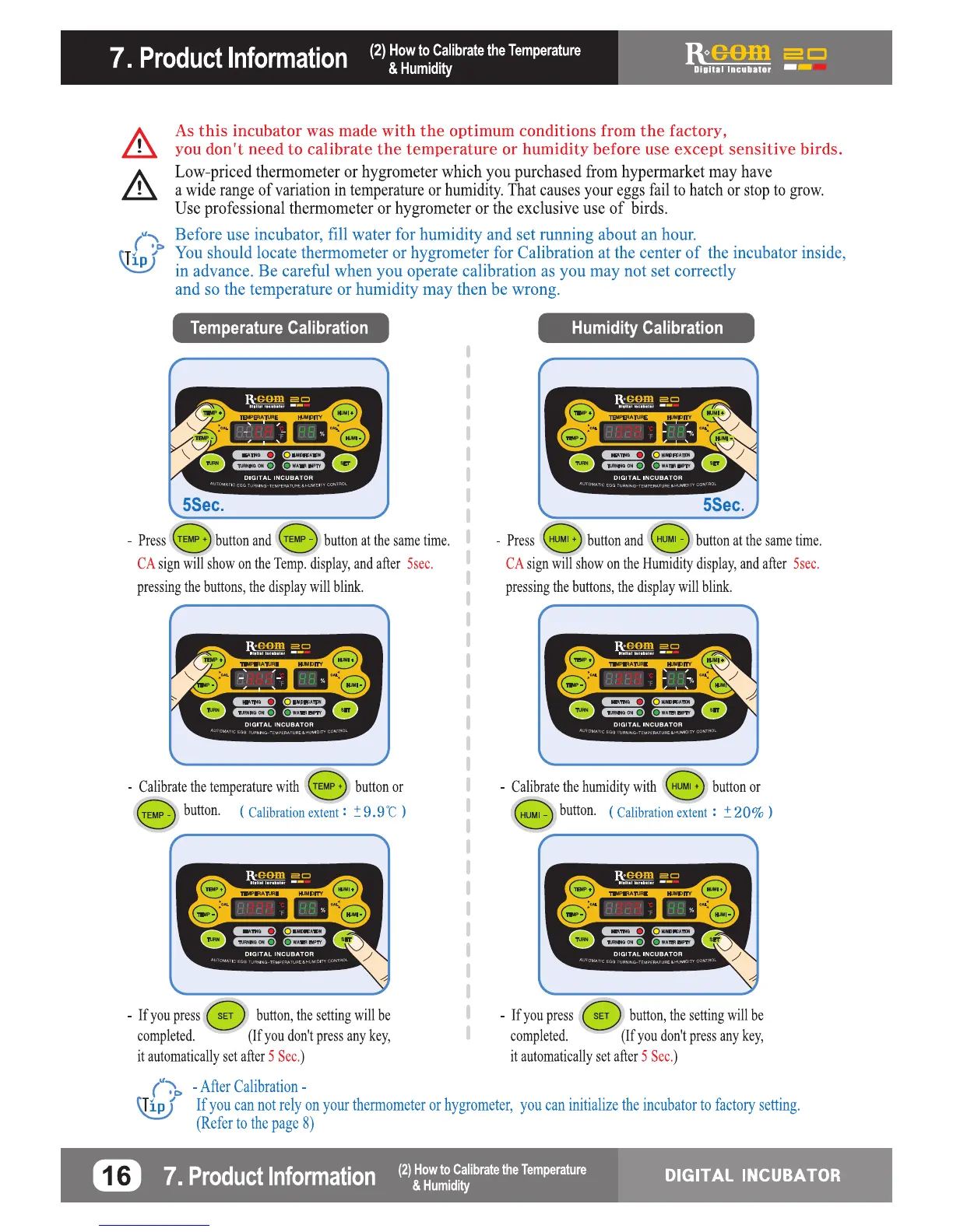 Rcom R-Com 20 - Temperature and Humidity Calibration Guide