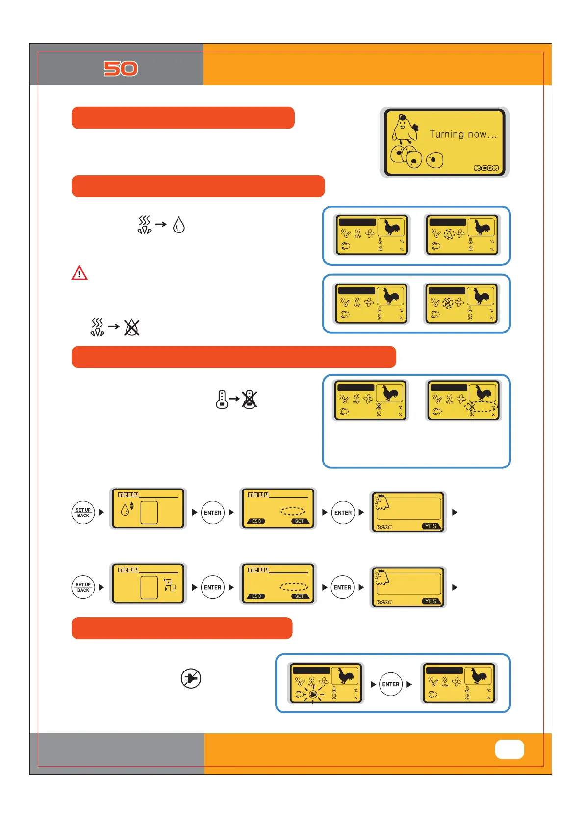 Rcom USB 50 - Egg Turning Check Function; Water Shortage Detecting Function; Abnormal High or Low Temperature Alarm Function; Power Failure Alarm Function