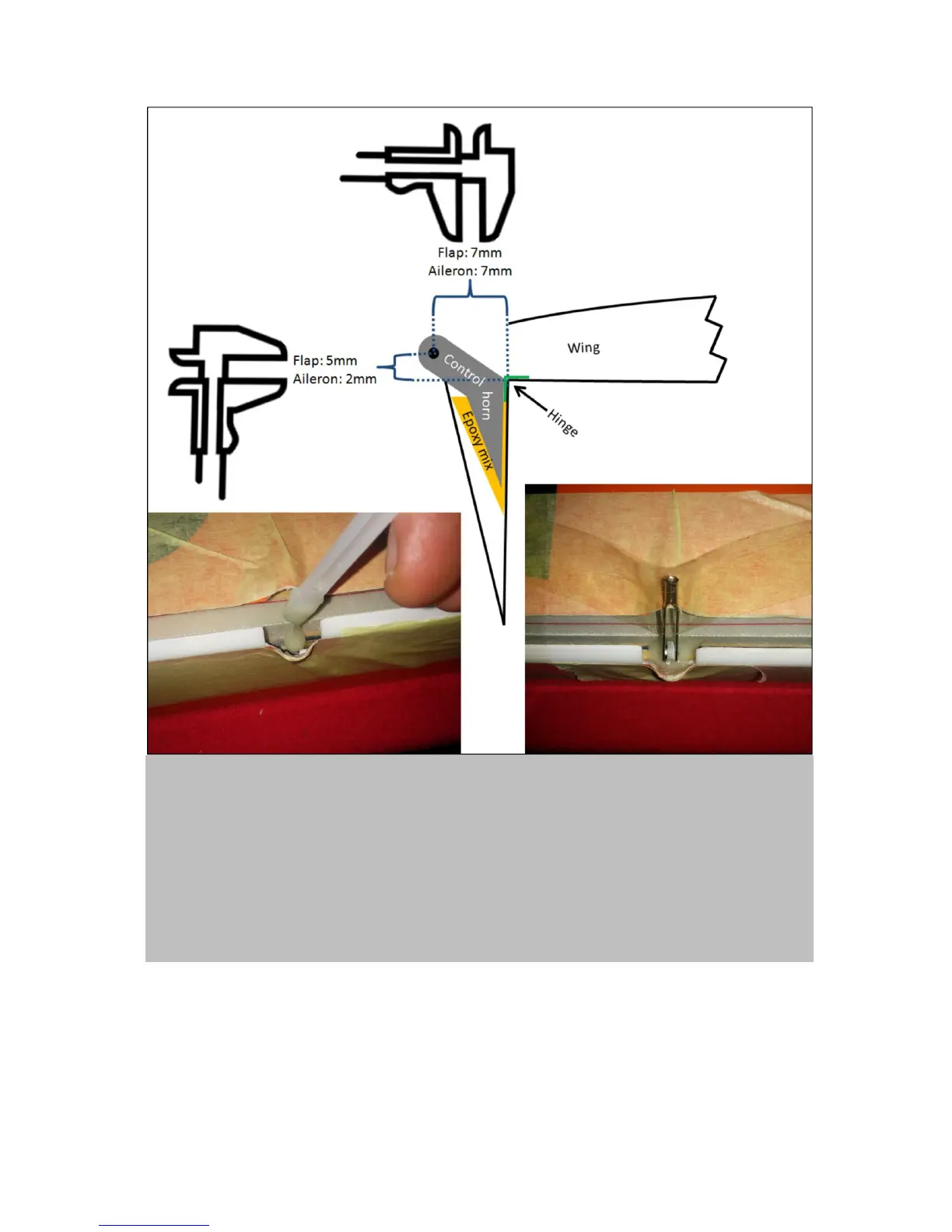 respective to the hinge of each control surface. Note the different positioning for flaps and ails. To glue the