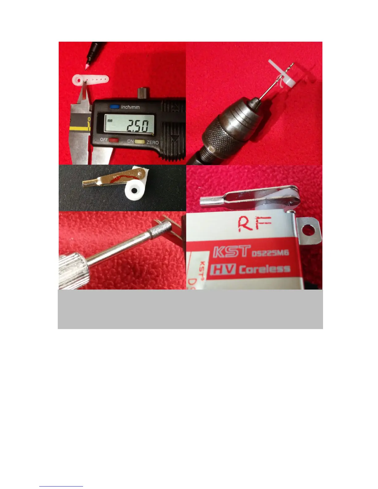 and lower left panel). Once that is done the clevis allows for full movement when mounted on the servo