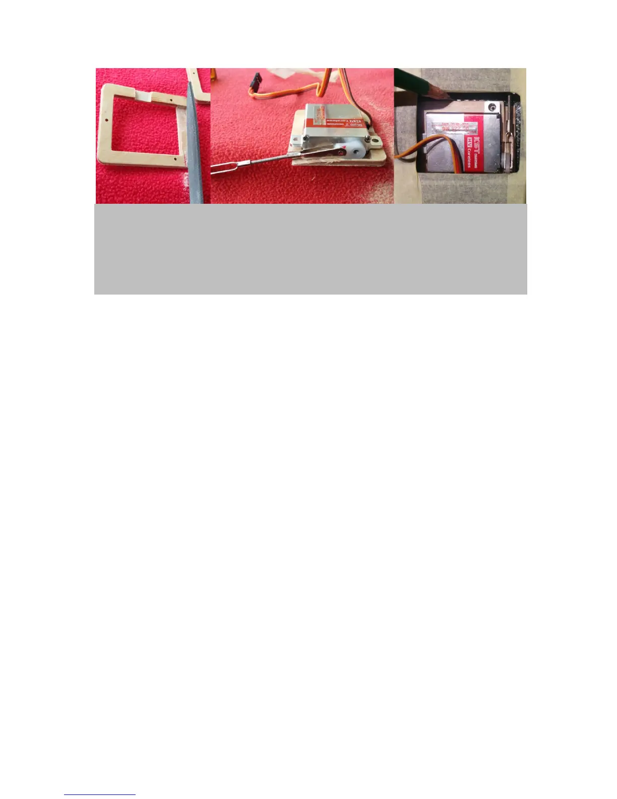 panel) to allow for full movement of the servo horns (middle). Check if full range of motion is allowed for