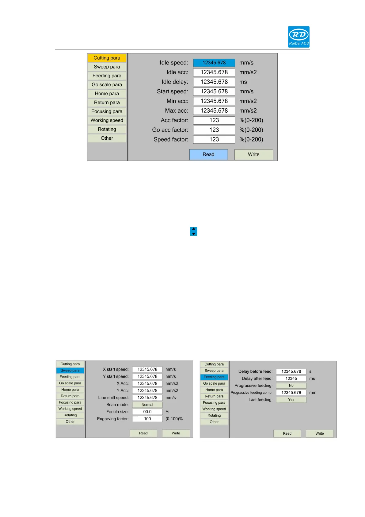 on the "Write" entry. If the user wants to verify that the parameters are saved
