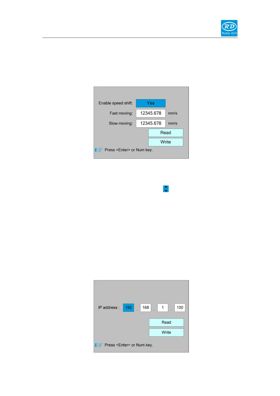 Select the "IP setting" entry under the controller setting interface, press the <Enter>