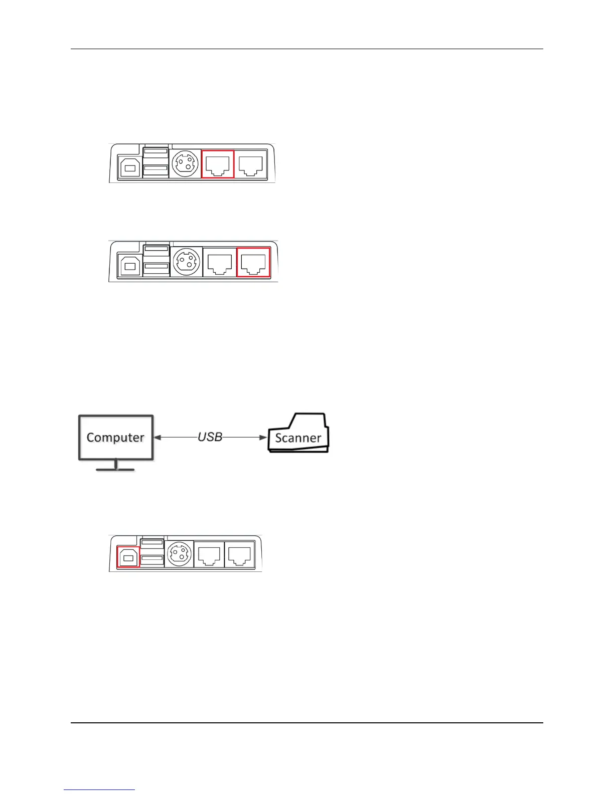 Ethernet port on the back of your scanner (marked in red below) and the other end into your