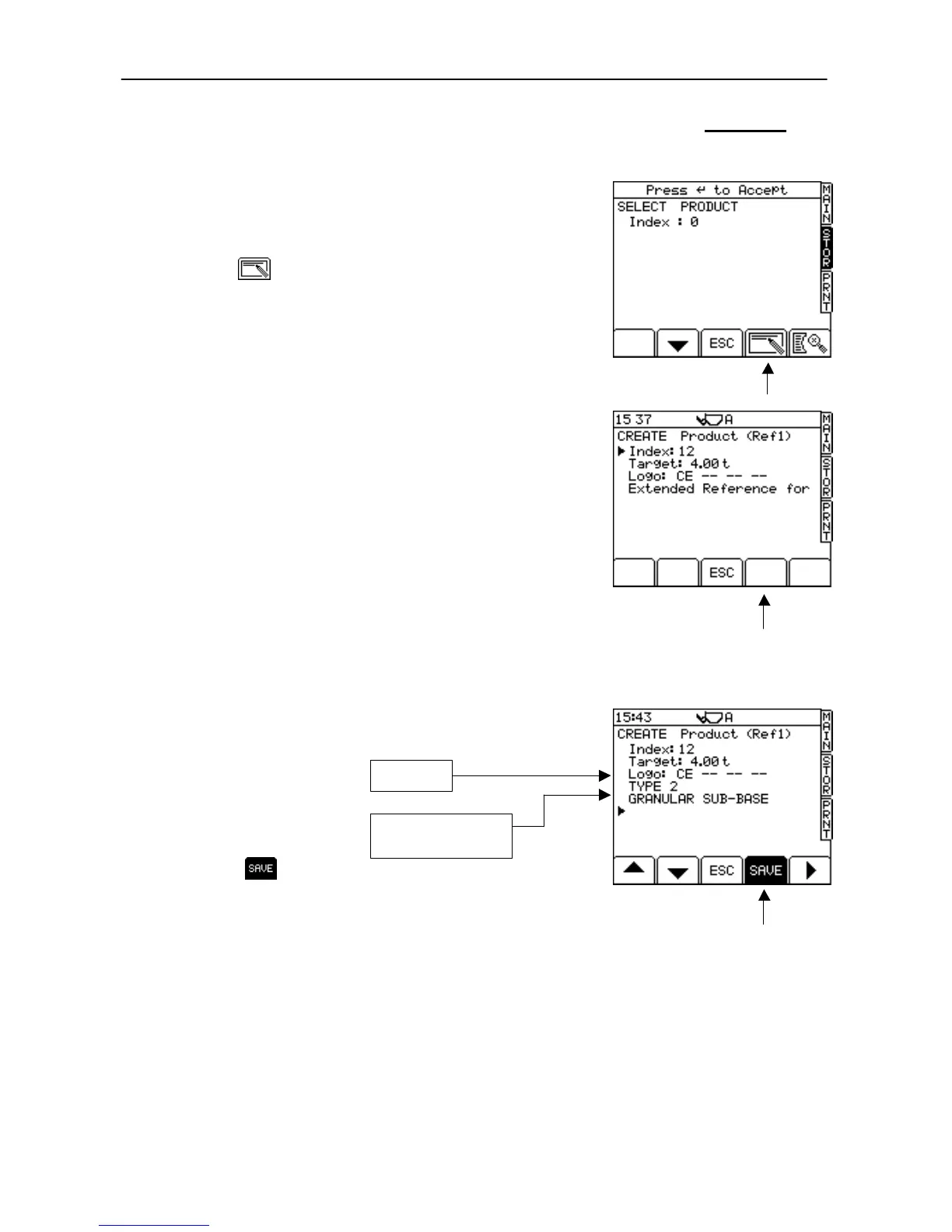 1. Press the STOR key to select the first Reference store screen