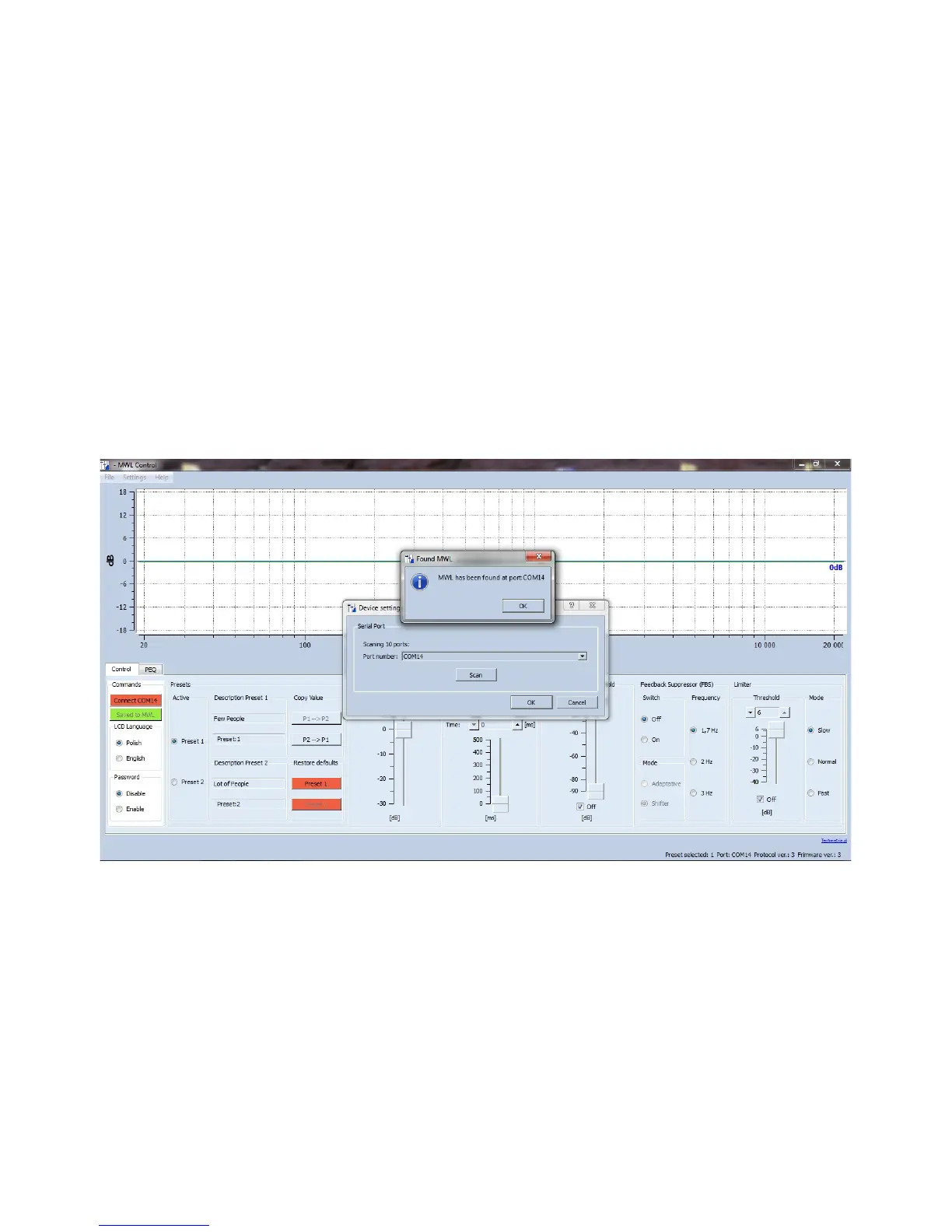 All settings introduced by the amplifier’s control panel can be also done by the PC computer. To get the