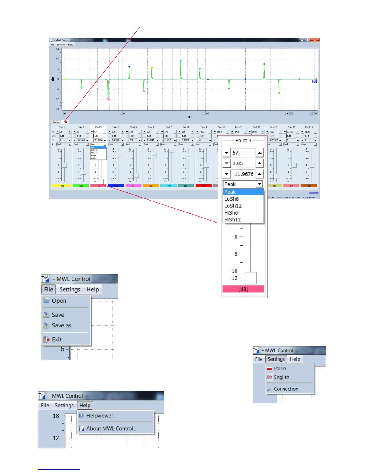 20 Hz ¸ 21kHz, -12dB/+12dB; 0,05 ¸ 3oct,