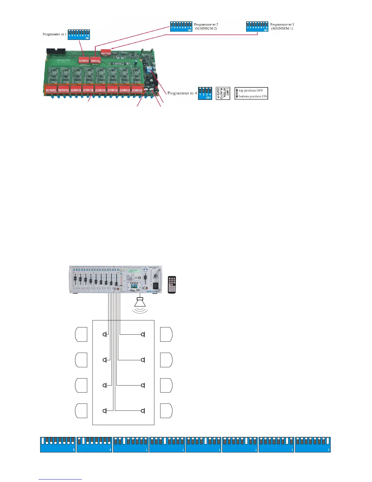 Channel programmers (1-8) factory settings: all switches of channels programmers in upper position (OFF).