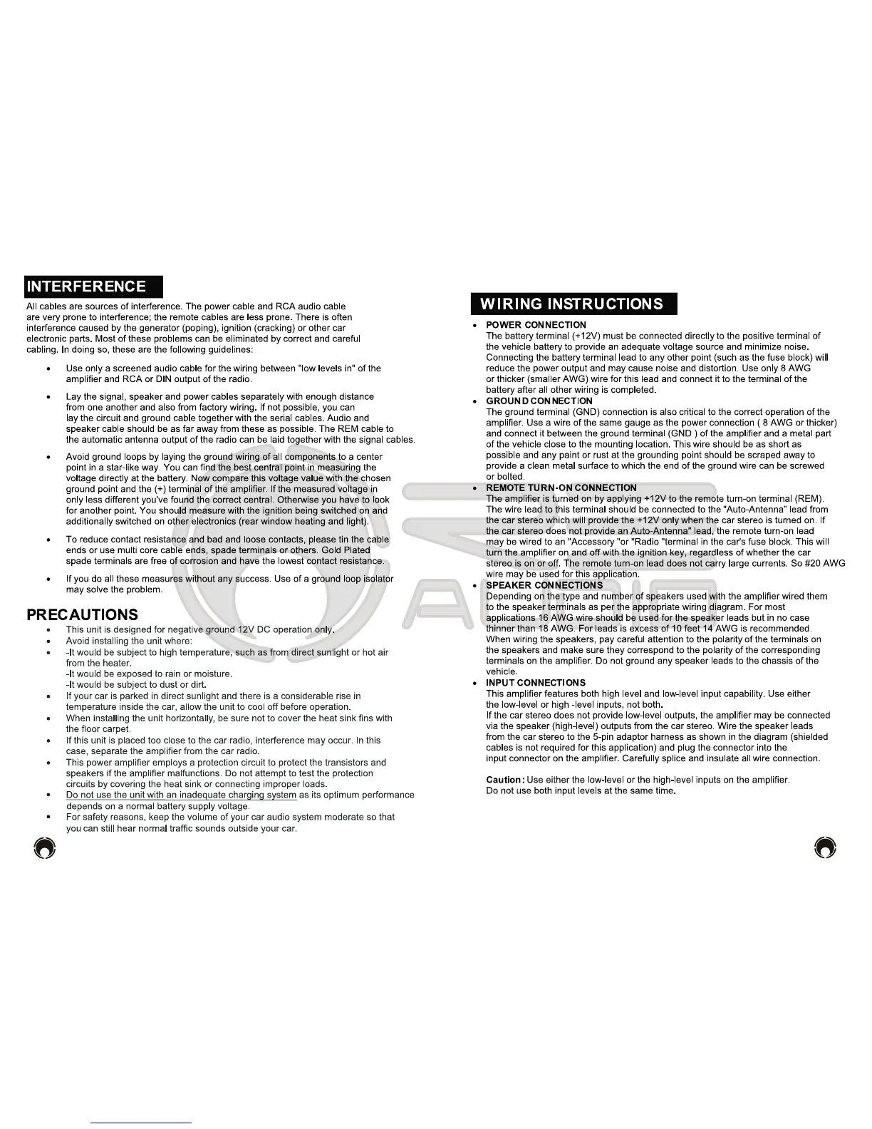 RE Audio XTX-5000.1 - Installation Wiring Instructions; Power Connection Best Practices; Ground Connection Best Practices; Remote Turn-On Wiring