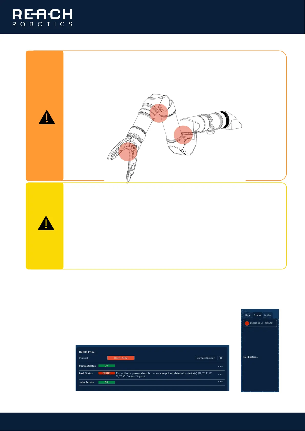 The Reach Alpha presents multiple crush and/or cut hazards: in the jaws or end-effector,
