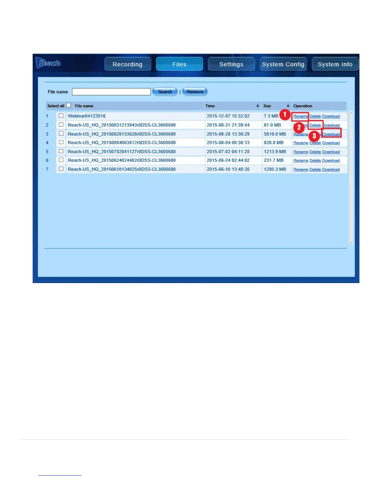 shows when the file was recorded, its physical size and the options for what you can do with each file.