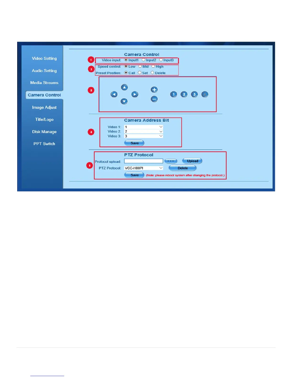 Reach Bee8 - Settings Page, Camera Control Tab