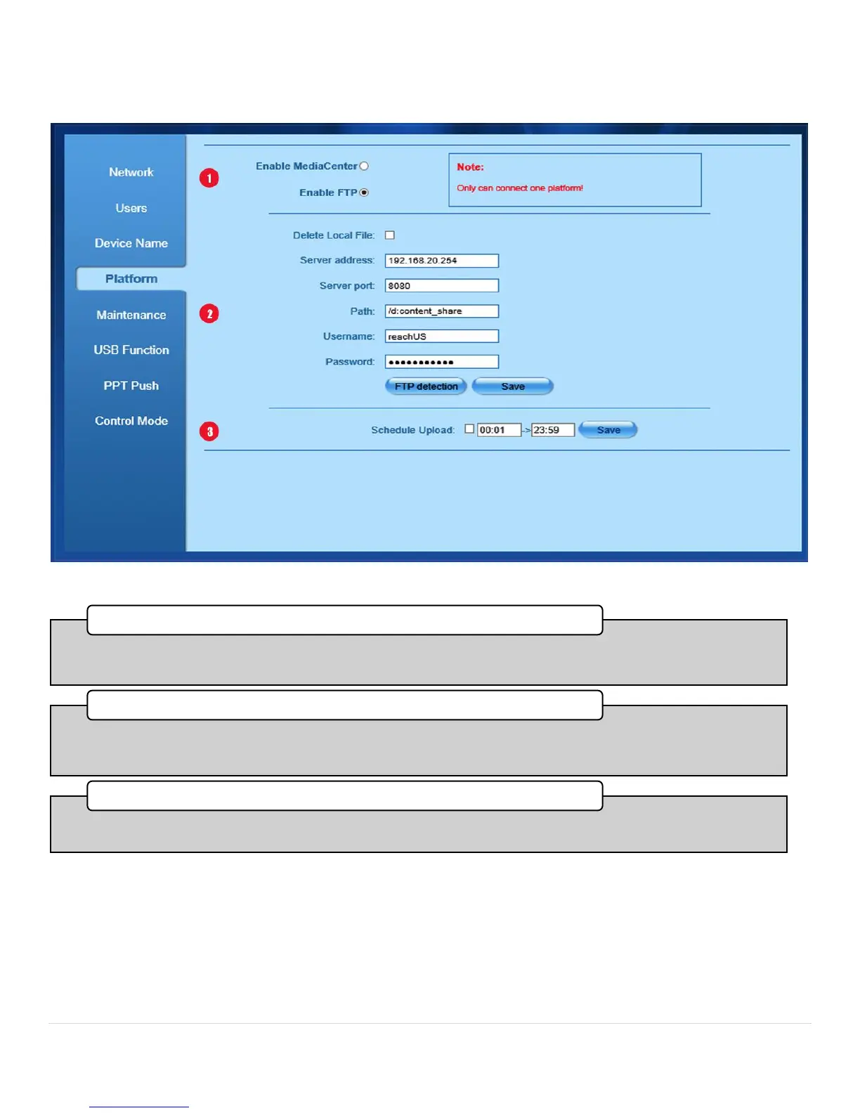 System Config Platform Tab with FTP option chosen