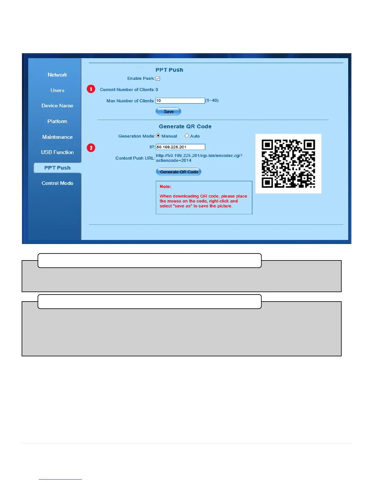 •To enable PowerPoint Puch check the Enable Push box. Below you can enter the maximum amount of
