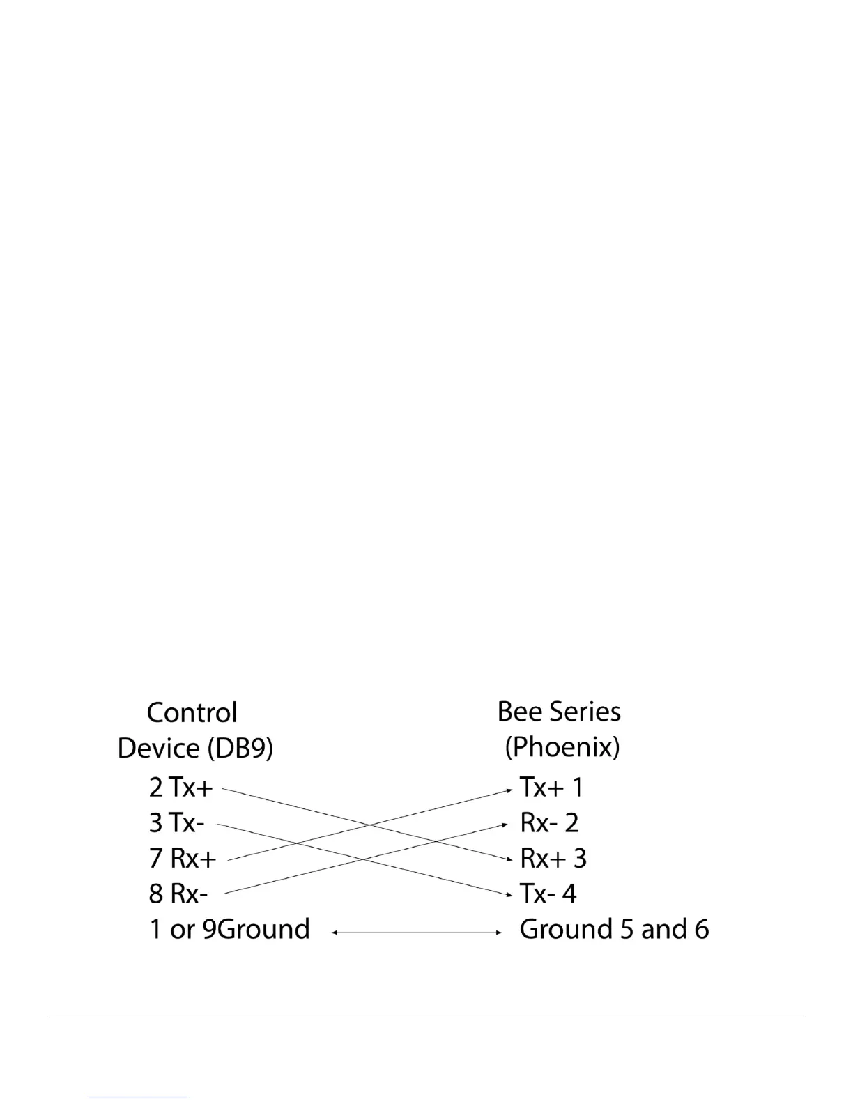 Serial commands are sent to the bee8 over an RS-422 or RS-485 connection, as the Bee8 will be returning feedback to