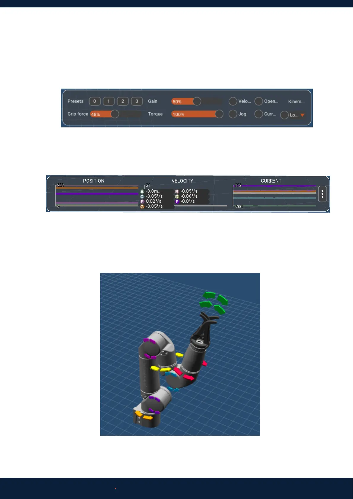 3. Making sure it is safe to do so, use the directional arrows in the 3D model of the arm to rotate each joint.