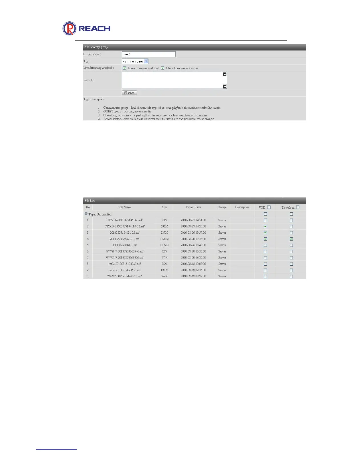 common user group and guest group, live streaming authority can be modified as well.
