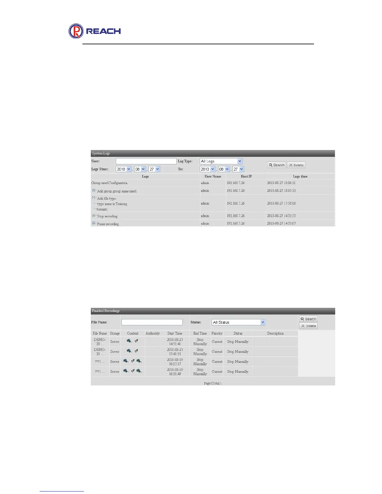 Logs information for recording task can be reviewed and inquired according to File Name and