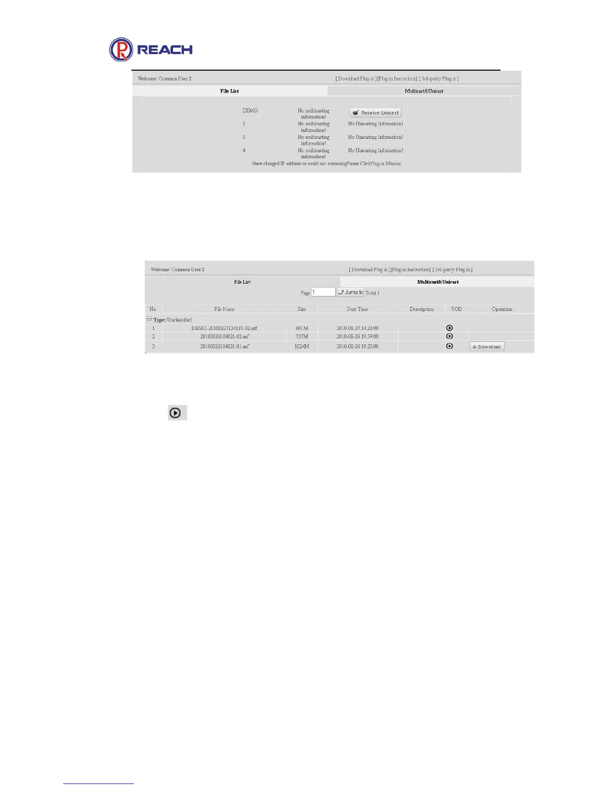 Click to play on demand, Click [Download] to save the file on client’s pc.