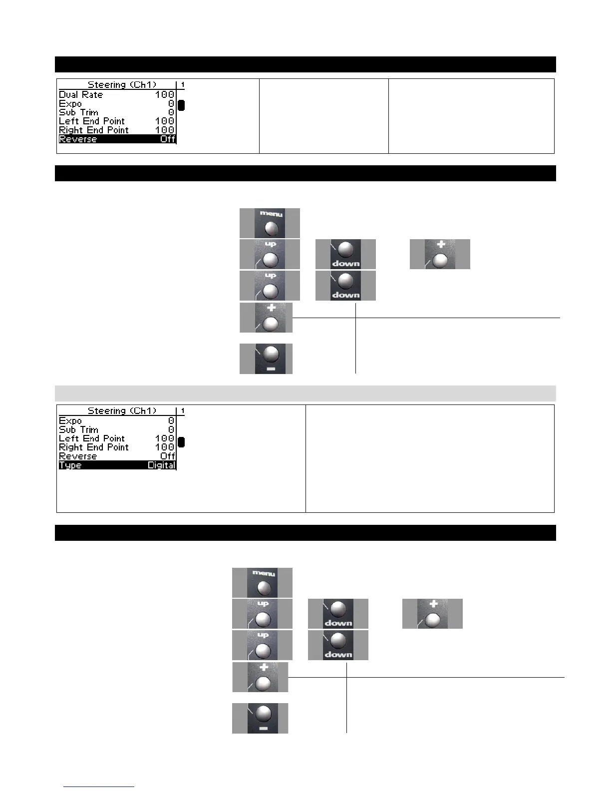 Use the navigation controls to change the steering servo reverse setting as follows: