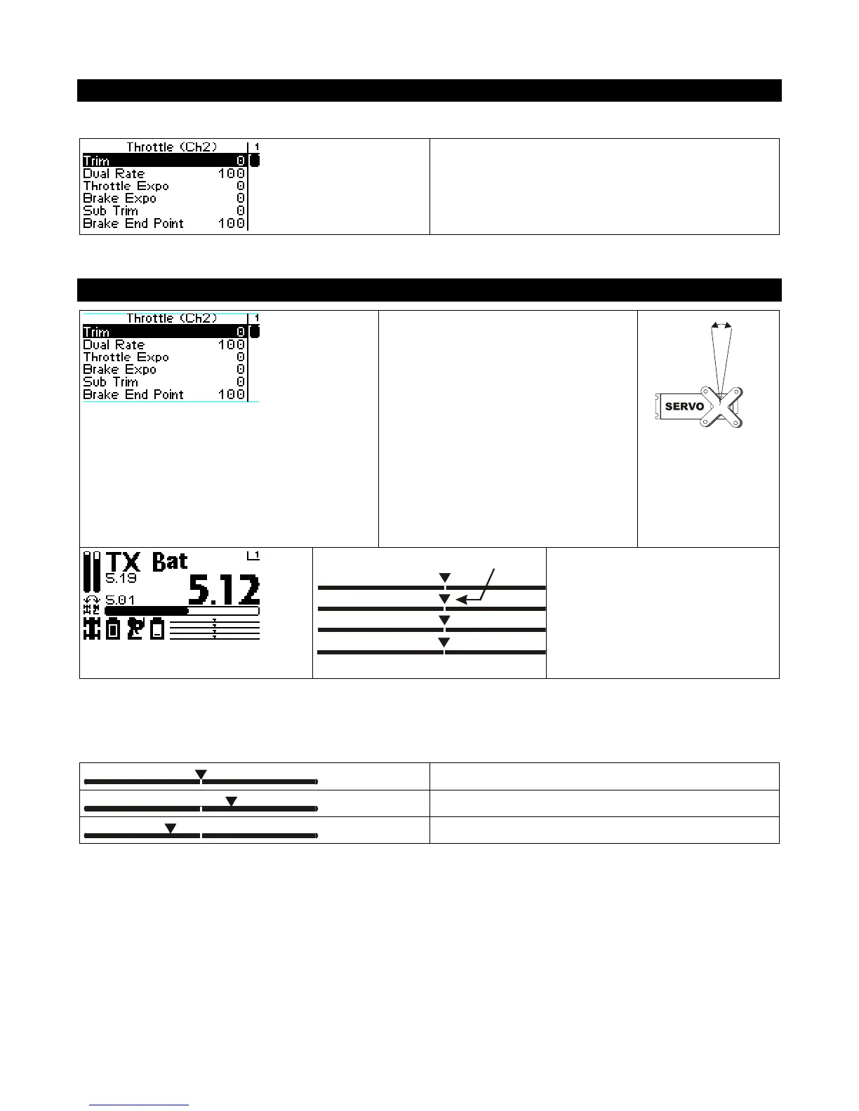 Changing the throttle trim has the following visual effect on the driving screen bars: