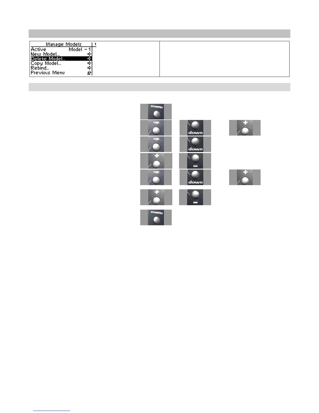Use the navigation controls to delete a model as follows: