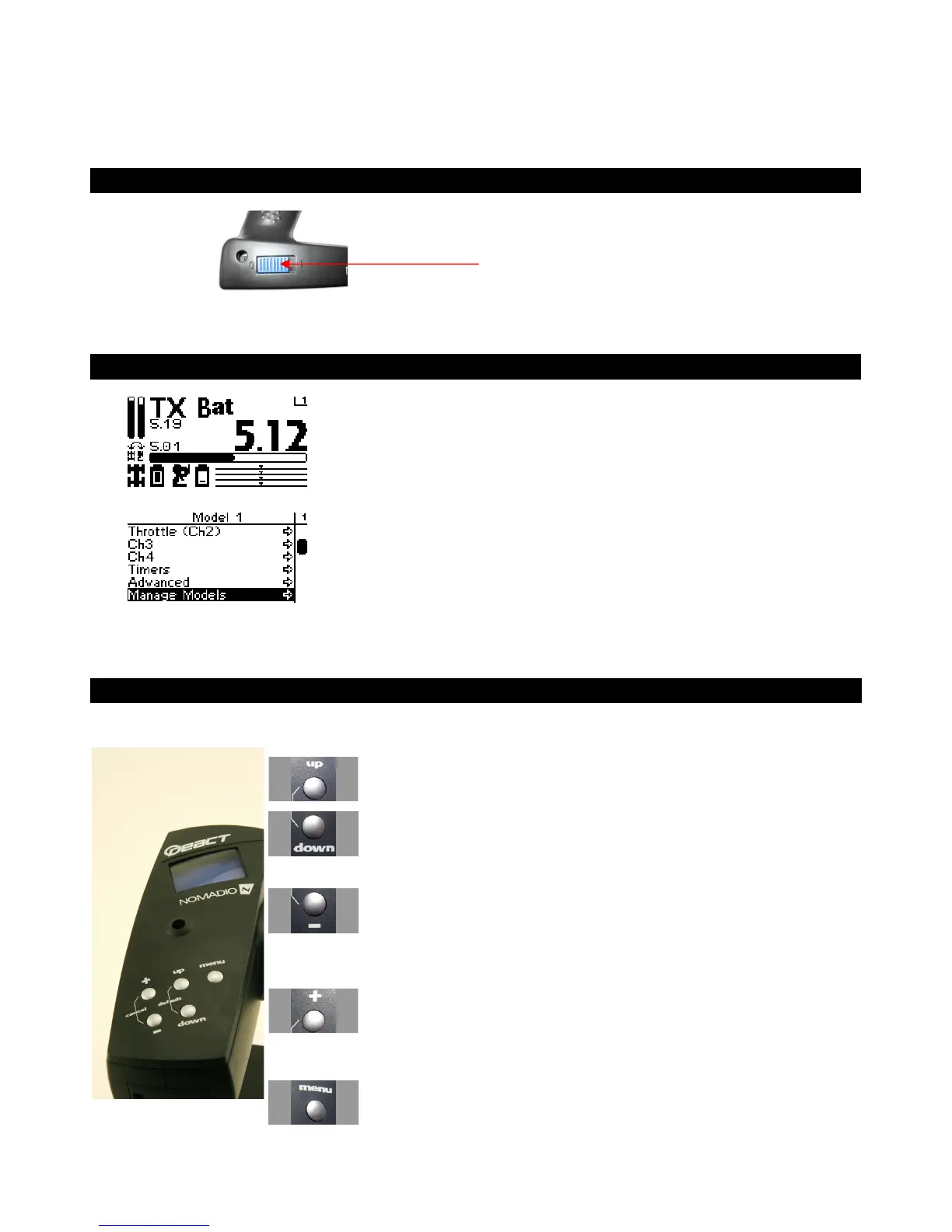displays radio and battery status,