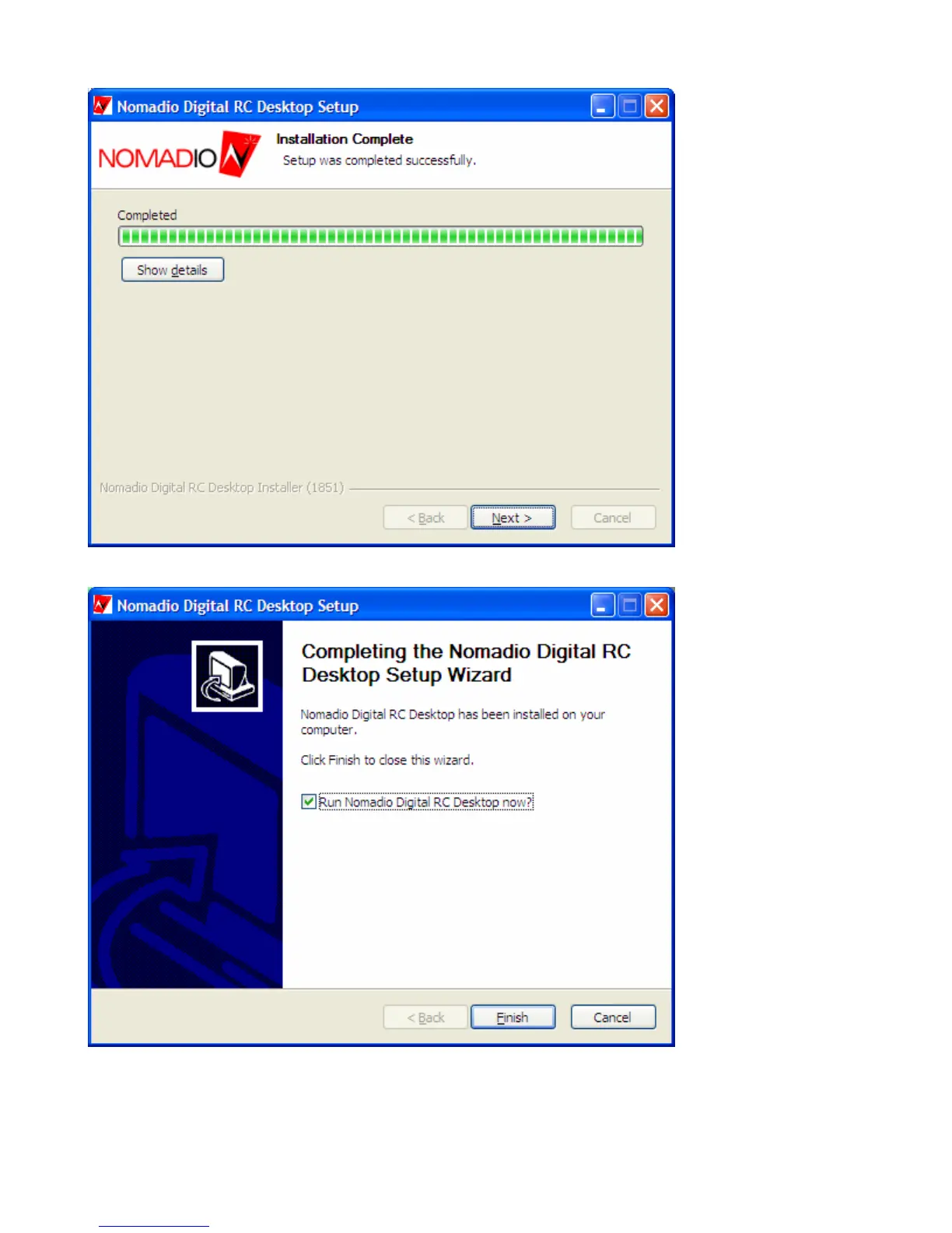 the program after exiting the Setup Wizard. Click Finish to exit the Nomadio Digital RC Desktop
