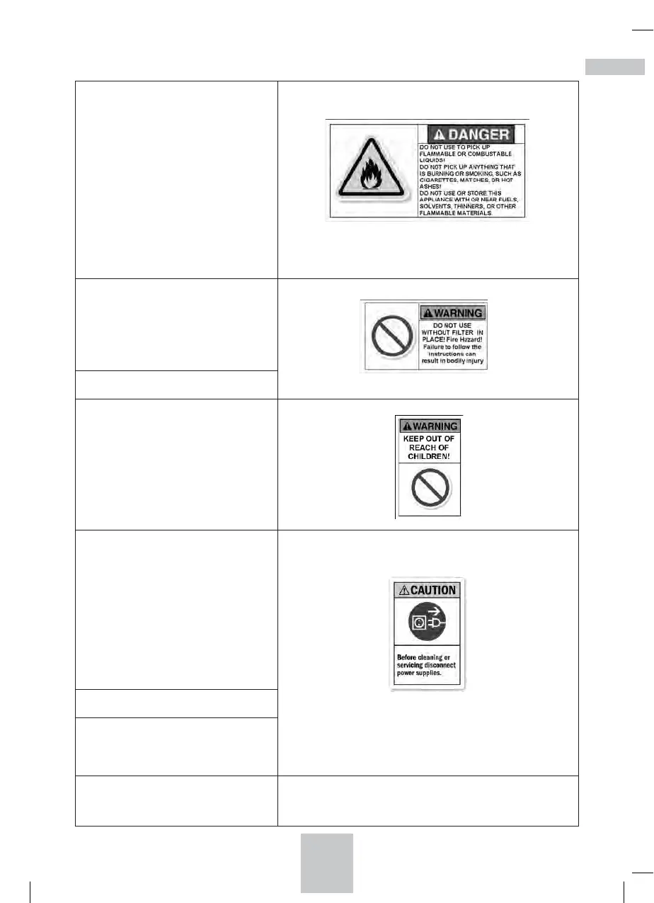 NE PAS utiliser pour ramasser des liquides