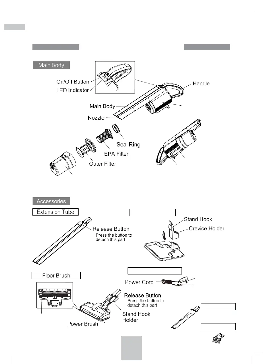 ReadiVac EAZE - Product Diagram; Main Body Components; Accessory Components