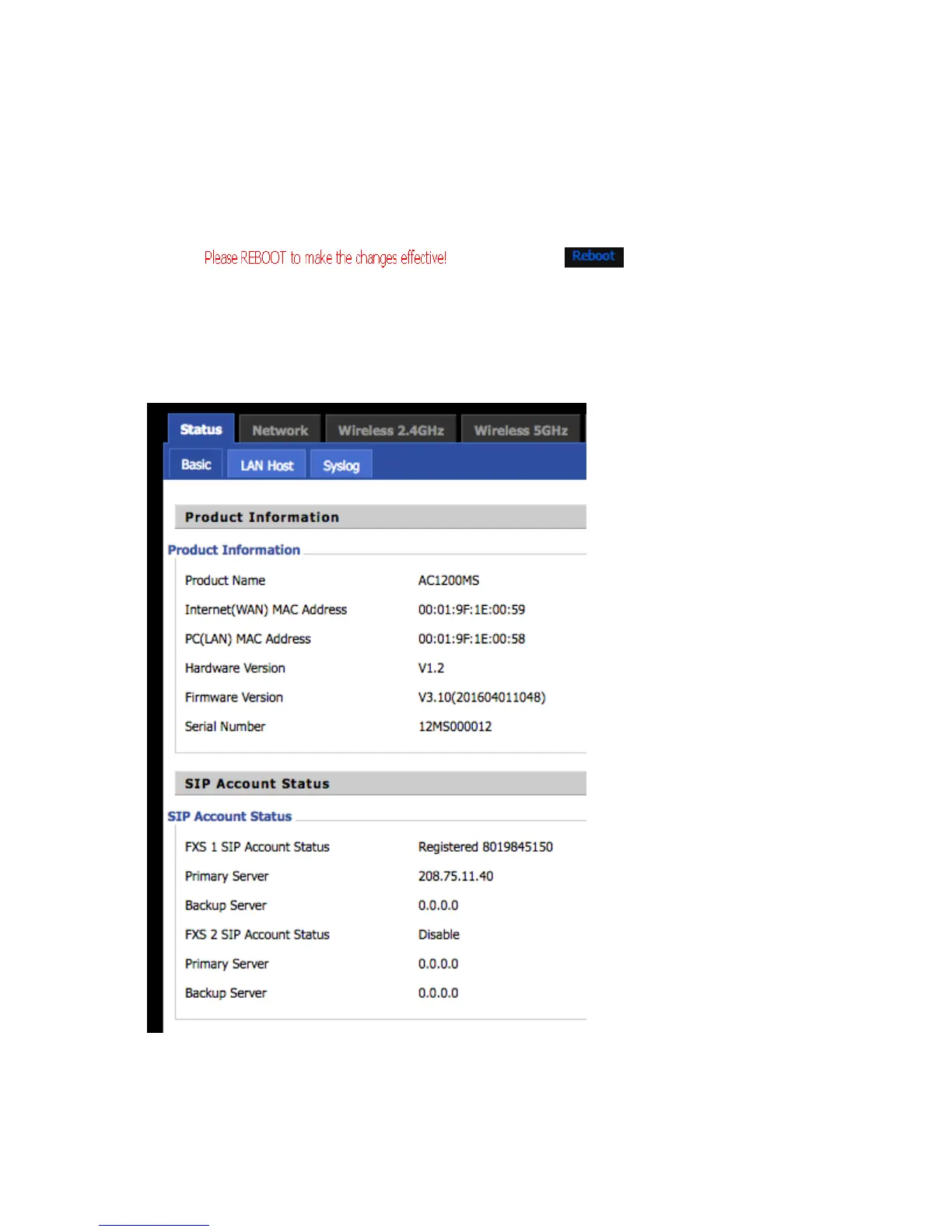 Ready Net AC1200M - View SIP Register Status