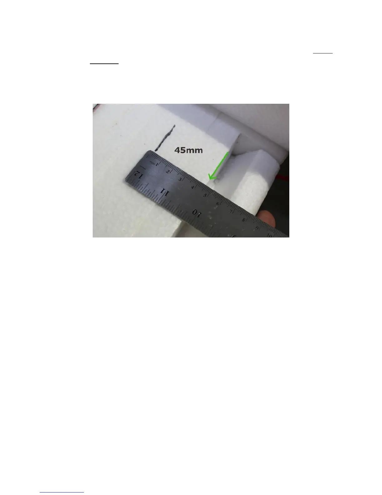 45mm measured from behind the leading edge flap shown below. This